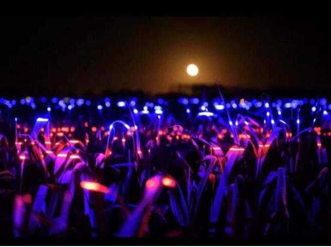 記者從荷蘭國家旅游局獲悉,荷蘭新銳藝術(shù)家丹·羅斯加德在荷蘭弗萊福蘭省一片兩萬平方米的農(nóng)田里,打造了一個(gè)燈光藝術(shù)裝置。該藝術(shù)裝置名為《生長》,旨在向農(nóng)業(yè)致敬,是丹·羅斯加德繼《梵高星空小路》夜游項(xiàng)目之后,打造的一處新藝術(shù)景觀。