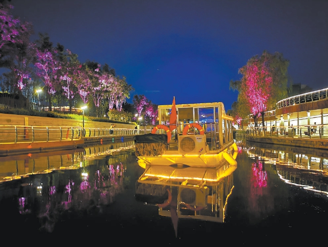 寸土寸金的東四環,也將可泛舟夜賞。本周六,亮馬河燕莎橋至朝陽公園段正式通船,并開通夜賞航線,京城再添風情水岸。