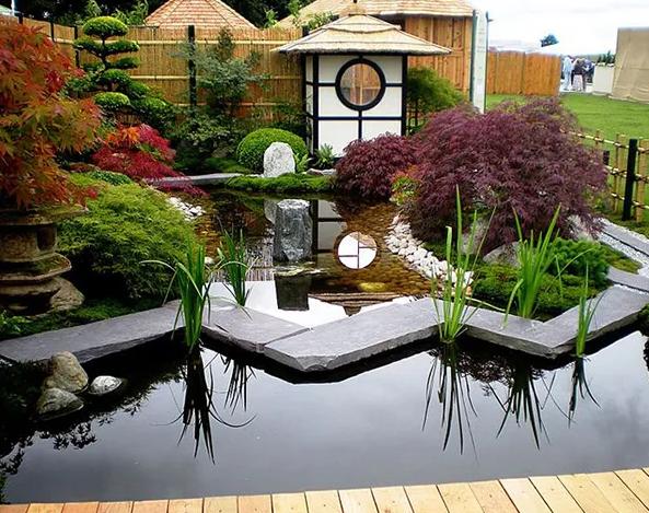 許多現代的日式庭園所吸收的大多是禪宗沉思冥想的枯山水設計思想。其總體設計遵循著不對稱的原則,而整體風格則是寧靜、簡樸,甚至是節儉的。